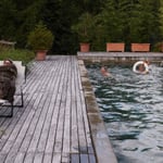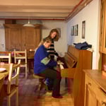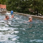Für unser leibliches Wohl sorgte unser Besenwagen bzw. dessen Besitzer Luzia und Reto mit feinen Spaghetti. Für Unterhaltung sorgte ein Mäuschen, das frech durch die Stube flitzte. Die meisten von uns genossen den Abend bei einem Gläschen Likör in gemütlicher Runde, nur drei unentwegte Badenixen konnten es nicht lassen, trotz nicht gerade sommerlicher Temperaturen den Swimmingpool im Garten auszuprobieren. Zum Schlafen verteilten wir uns in die Gästezimmer des Hofs.