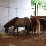 Ziel unserer Reise war der Ponyhof Schwarzenberg in Gontenschwil, wo wir gegen Abend müde, aber zufrieden eintrafen. Die Pferde durften in der Reithalle übernachten. Mit Bändern und Stecken trennten wir Paddocks ab, so dass alle Tiere einen komfortablen Platz hatten.