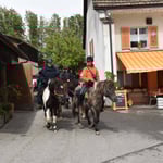 Auf dem Weg nach Gontenschwil begegneten wir der Reitergruppe noch einige Male. Dies waren immer Gelegenheiten für Fotos. Auf dem Ponyhof angekommen, wurden die Pferde versorgt und anschliessend die Zimmer bezogen. Für uns kein Thema, denn wir hatten ja unser Bett dabei…