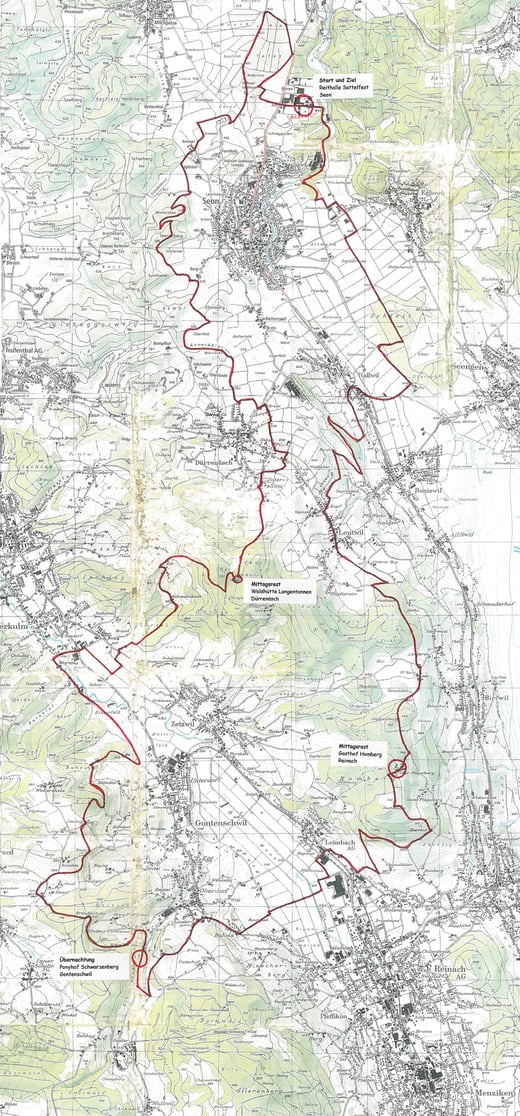 Am Wochenende des 5./6. Septembers 2015 trafen sich 8 erwartungsvolle Reiter mit 9 Pferden bei der Reithalle Seon zum 2-Tages-Ritt. Pferde wurden ausgeladen, geputzt und gesattelt, Gepäck ins hierfür bereitstehende Auto geladen. Als alle bereit waren und auch die letzte Satteltasche am richtigen Ort sass, ritten wir los. Nach der ersten Strassenüberquerung und einer Strecke im Wald fiel der Blick auf das Schloss Lenzburg und den Staufberg mit seiner weitherum sichtbaren Kirche.
