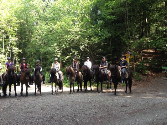Schon beim start war ich begeistert. Claudia und Bruno wohnen sehr schön in Kussnacht am Rigi. Es hatte sich 11 Reiter angemeldet und nach einen kurze Kaffee wo ich versuchte alle Leute schnell kennen zu lernen sind wir losgegangen. Die Tag war sonnig und warm und für Reiter und Pferde war es sehr angenehm in dem Wald zu sein. Claudia hat die Leitung gut im Griff und hat gesorgt dass allen zufrieden sind. Nicht zuviel Galopp und nicht zuviel im Schritt. Ich glaube dass jeder sehr zufrieden war mit diesem wunderschöne Ausritt.
