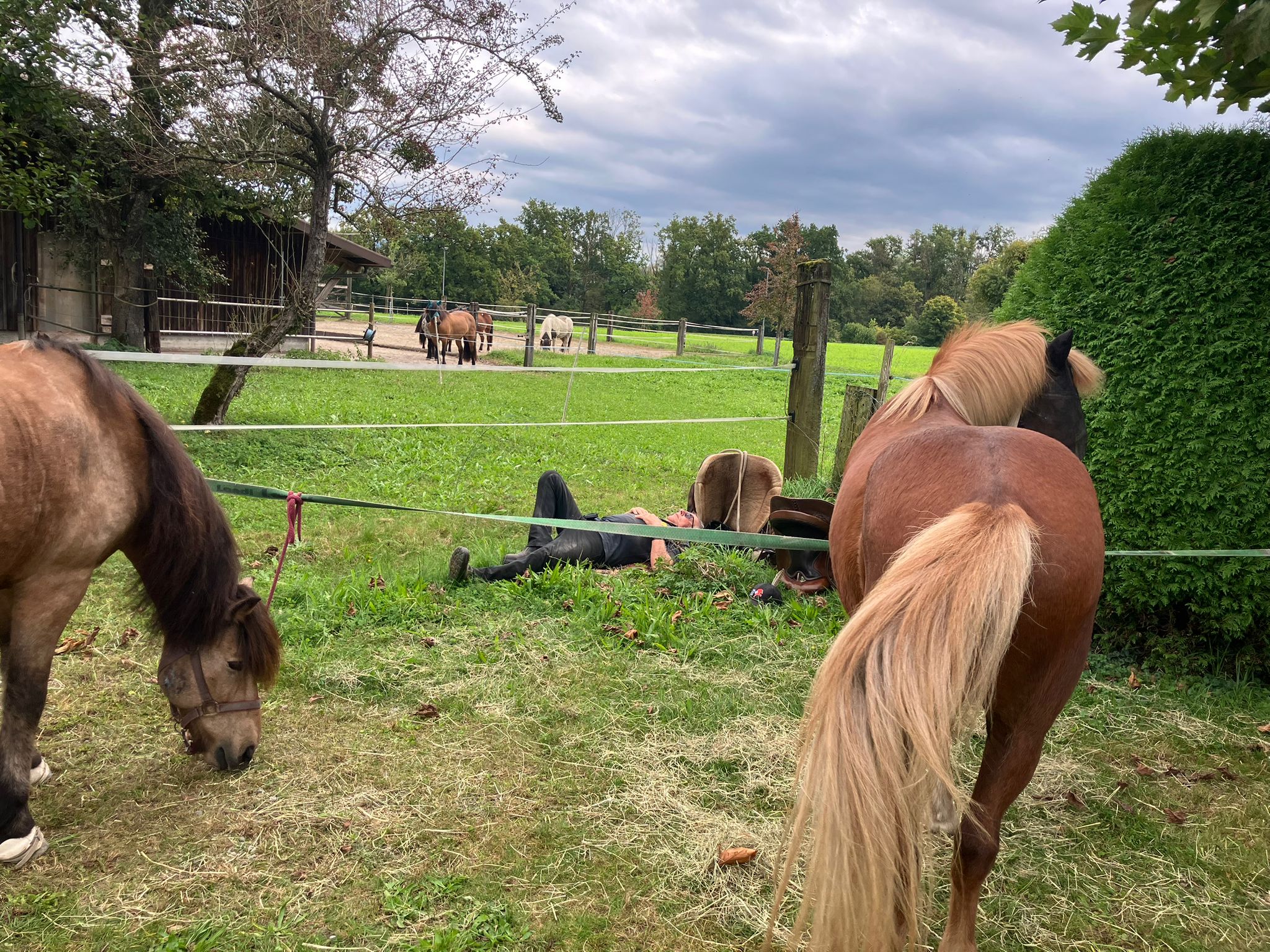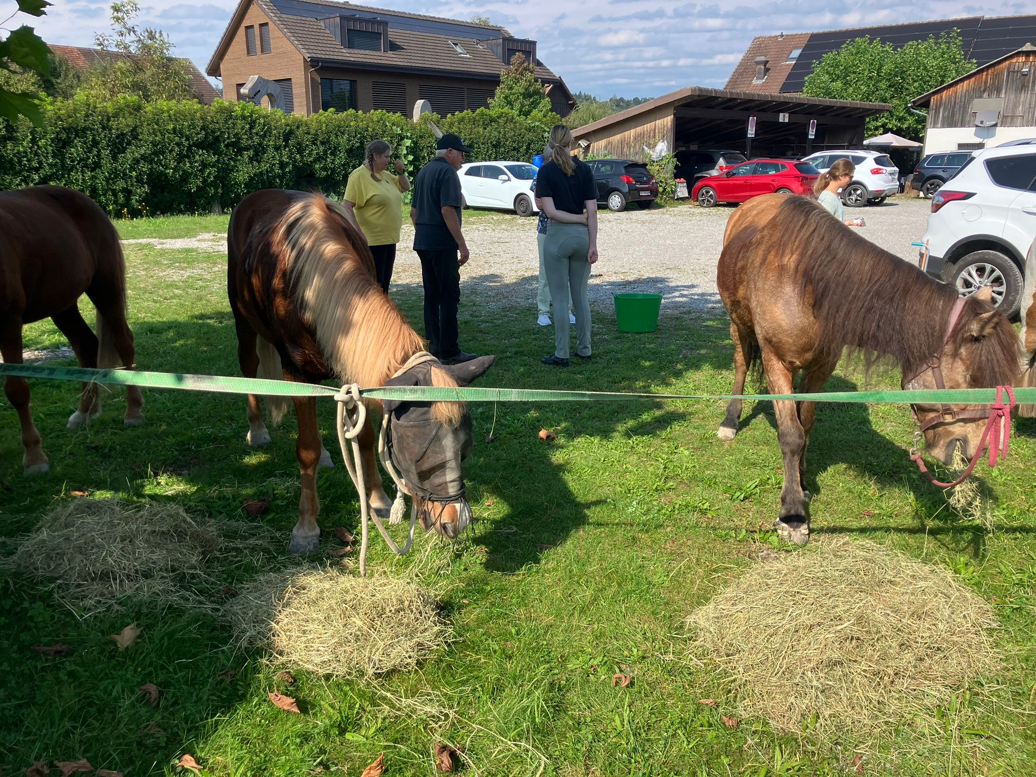 Die 10 TeilnehmerInnen genossen das Miteinander, den Austausch, das Lachen, das Diskutieren. Es wurden Neuigkeiten ausgetauscht und neugierig in die anderen Teller geschaut. Währenddessen genossen die Pferde friedlich in der Stille ihr Heu.